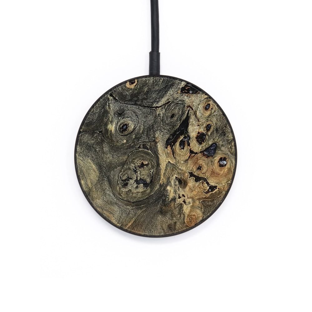 Perfectly simple, MagSafe compatible, USB-C, 1 of a kind Wireless Qi charger. CNC machined aluminum body. Every Wood+Resin inlay is unique and made at our shop in Elkhart, Indiana.
