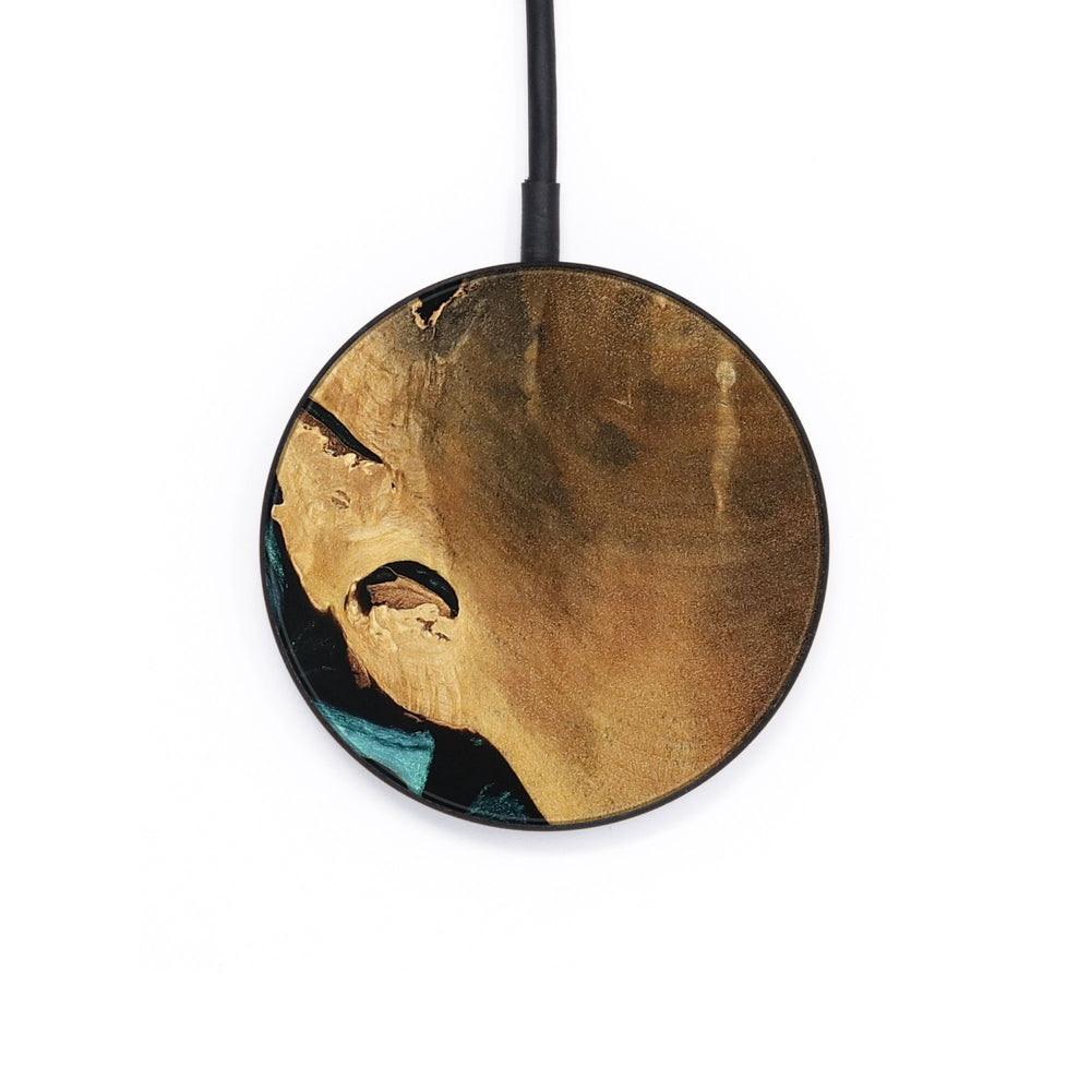Perfectly simple, MagSafe compatible, USB-C, 1 of a kind Wireless Qi charger. CNC machined aluminum body. Every Wood+Resin inlay is unique and made at our shop in Elkhart, Indiana.