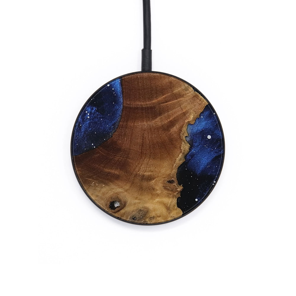 Perfectly simple, MagSafe compatible, USB-C, 1 of a kind Wireless Qi charger. CNC machined aluminum body. Every Wood+Resin inlay is unique and made at our shop in Elkhart, Indiana.