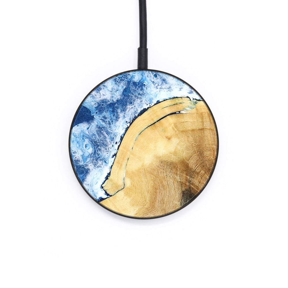 Perfectly simple, MagSafe compatible, USB-C, 1 of a kind Wireless Qi charger. CNC machined aluminum body. Every Wood+Resin inlay is unique and made at our shop in Elkhart, Indiana.