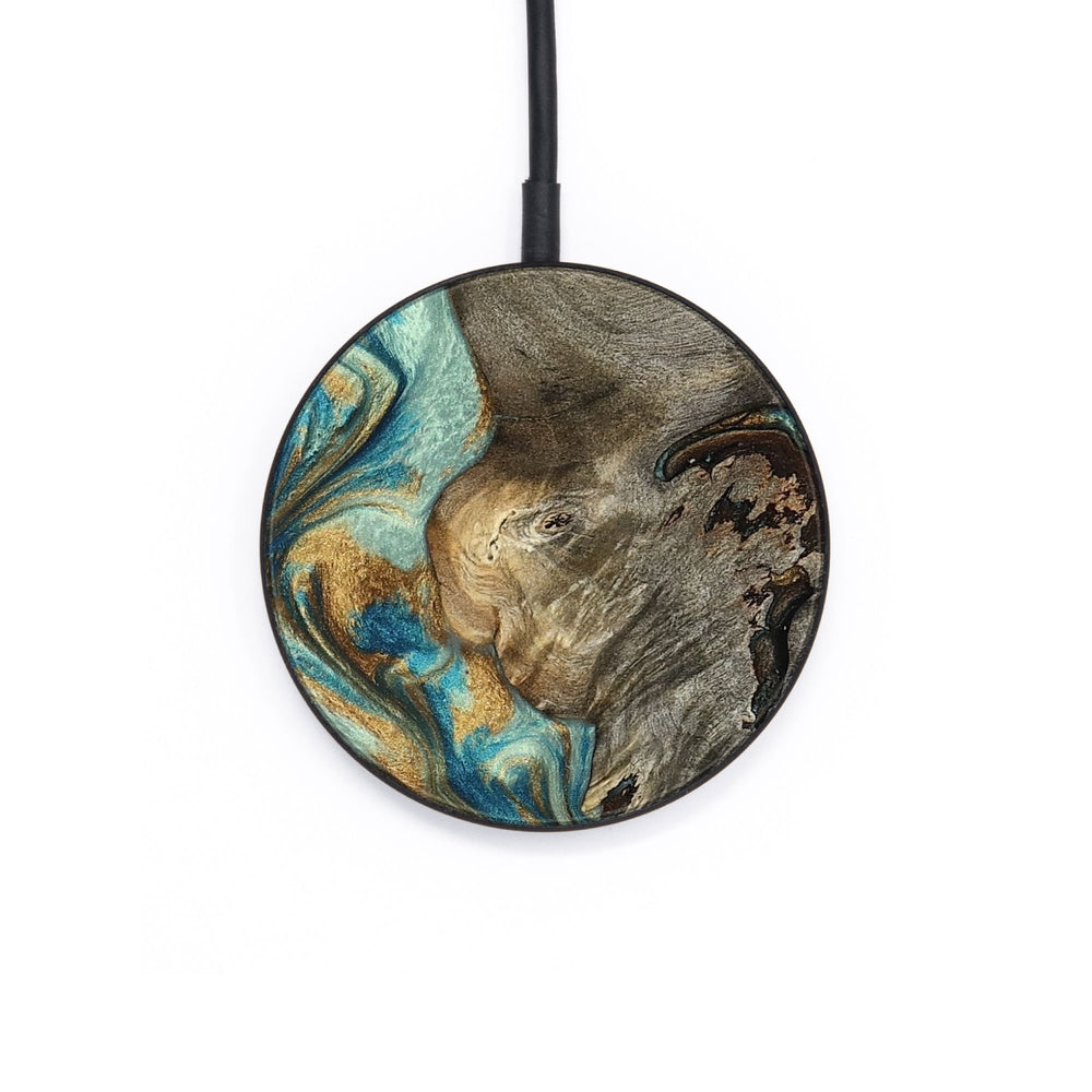 Perfectly simple, MagSafe compatible, USB-C, 1 of a kind Wireless Qi charger. CNC machined aluminum body. Every Wood+Resin inlay is unique and made at our shop in Elkhart, Indiana.