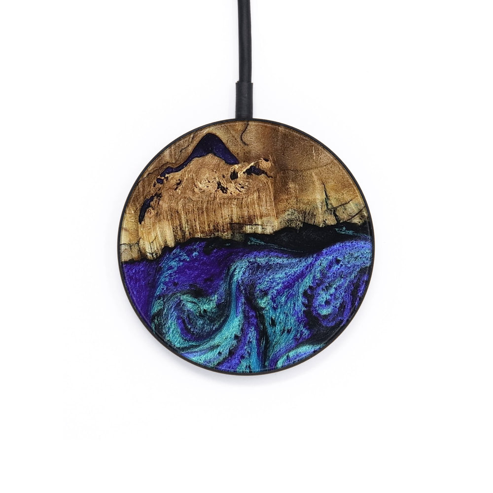 Perfectly simple, MagSafe compatible, USB-C, 1 of a kind Wireless Qi charger. CNC machined aluminum body. Every Wood+Resin inlay is unique and made at our shop in Elkhart, Indiana.