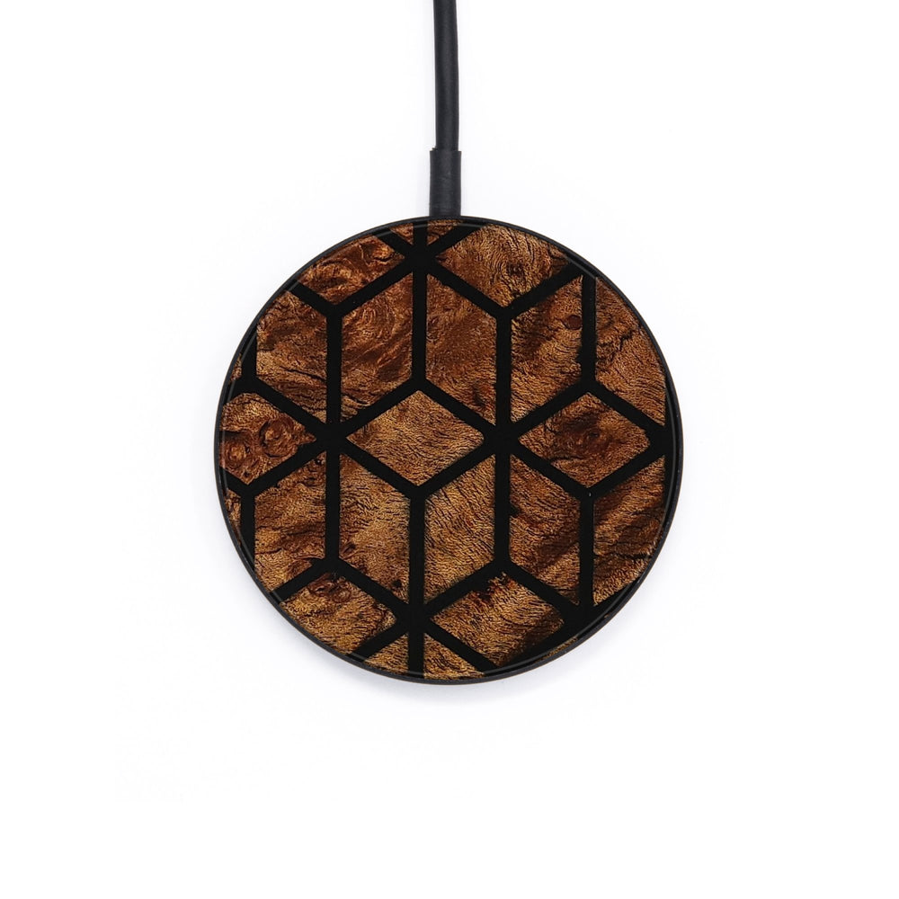 Perfectly simple, MagSafe compatible, USB-C, 1 of a kind Wireless Qi charger. CNC machined aluminum body. Every Wood+Resin inlay is unique and made at our shop in Elkhart, Indiana.