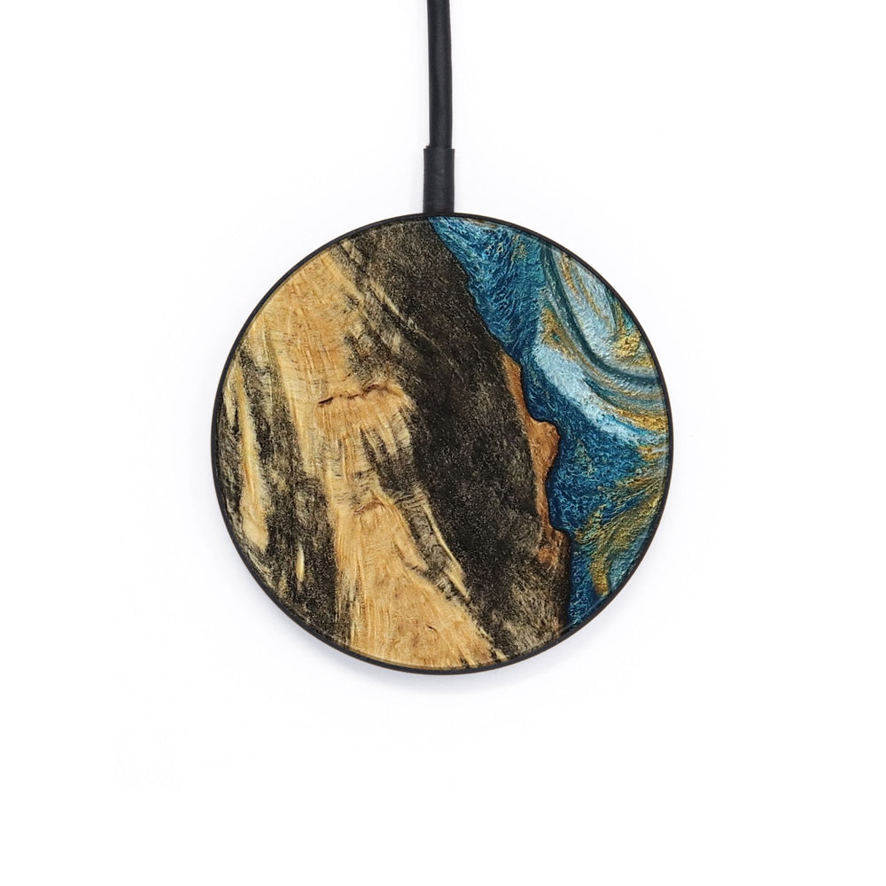 Perfectly simple, MagSafe compatible, USB-C, 1 of a kind Wireless Qi charger. CNC machined aluminum body. Every Wood+Resin inlay is unique and made at our shop in Elkhart, Indiana.