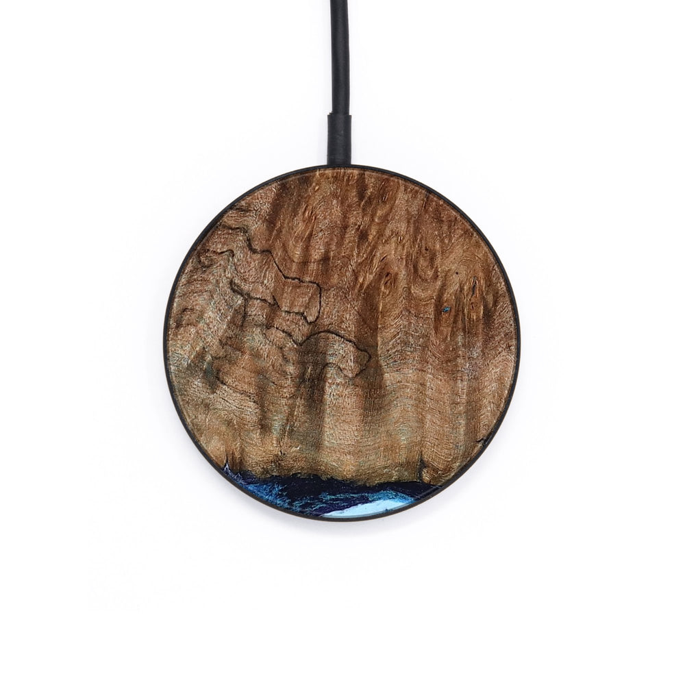 Perfectly simple, MagSafe compatible, USB-C, 1 of a kind Wireless Qi charger. CNC machined aluminum body. Every Wood+Resin inlay is unique and made at our shop in Elkhart, Indiana.