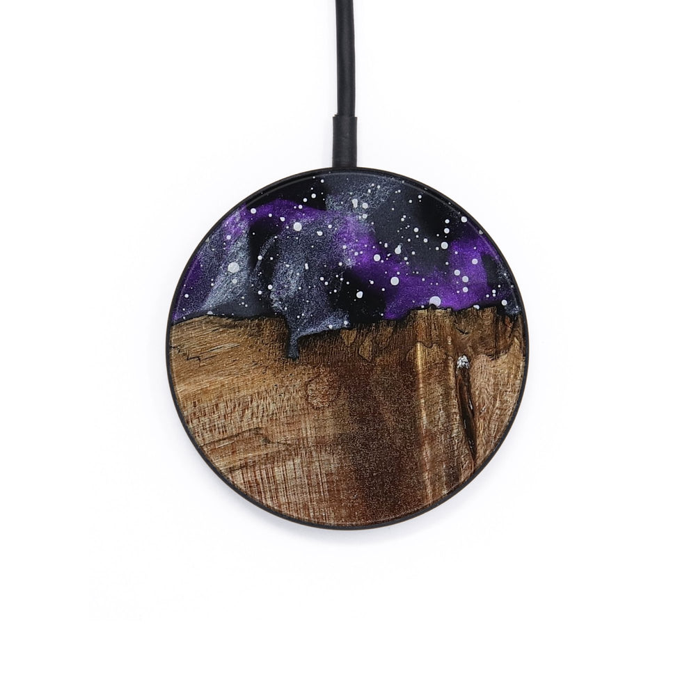 Perfectly simple, MagSafe compatible, USB-C, 1 of a kind Wireless Qi charger. CNC machined aluminum body. Every Wood+Resin inlay is unique and made at our shop in Elkhart, Indiana.