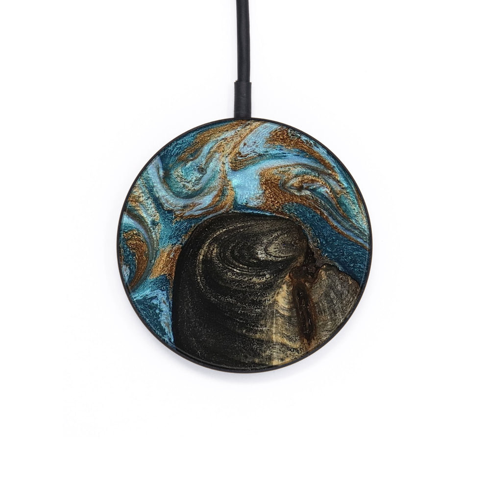 Perfectly simple, MagSafe compatible, USB-C, 1 of a kind Wireless Qi charger. CNC machined aluminum body. Every Wood+Resin inlay is unique and made at our shop in Elkhart, Indiana.