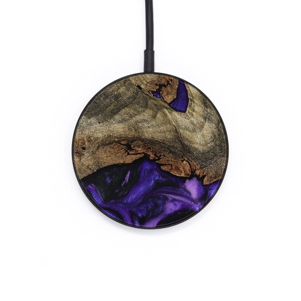 Perfectly simple, MagSafe compatible, USB-C, 1 of a kind Wireless Qi charger. CNC machined aluminum body. Every Wood+Resin inlay is unique and made at our shop in Elkhart, Indiana.
