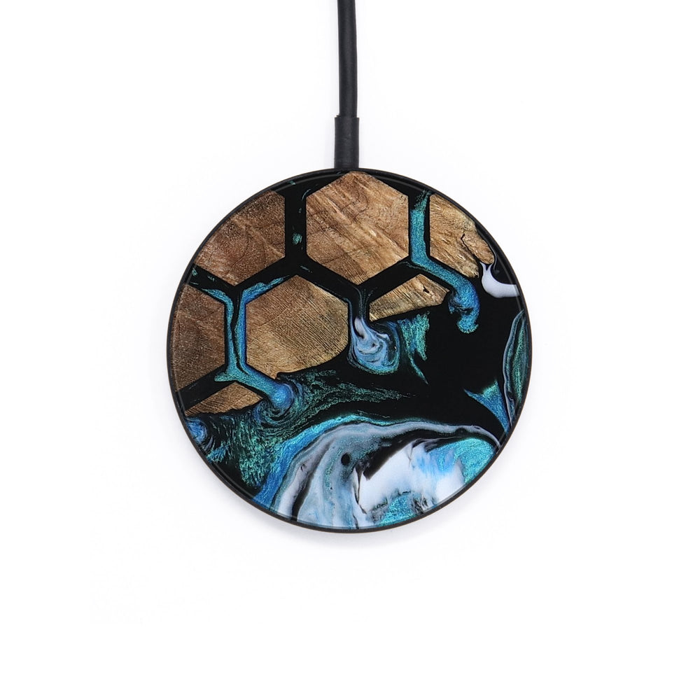 Perfectly simple, MagSafe compatible, USB-C, 1 of a kind Wireless Qi charger. CNC machined aluminum body. Every Wood+Resin inlay is unique and made at our shop in Elkhart, Indiana.