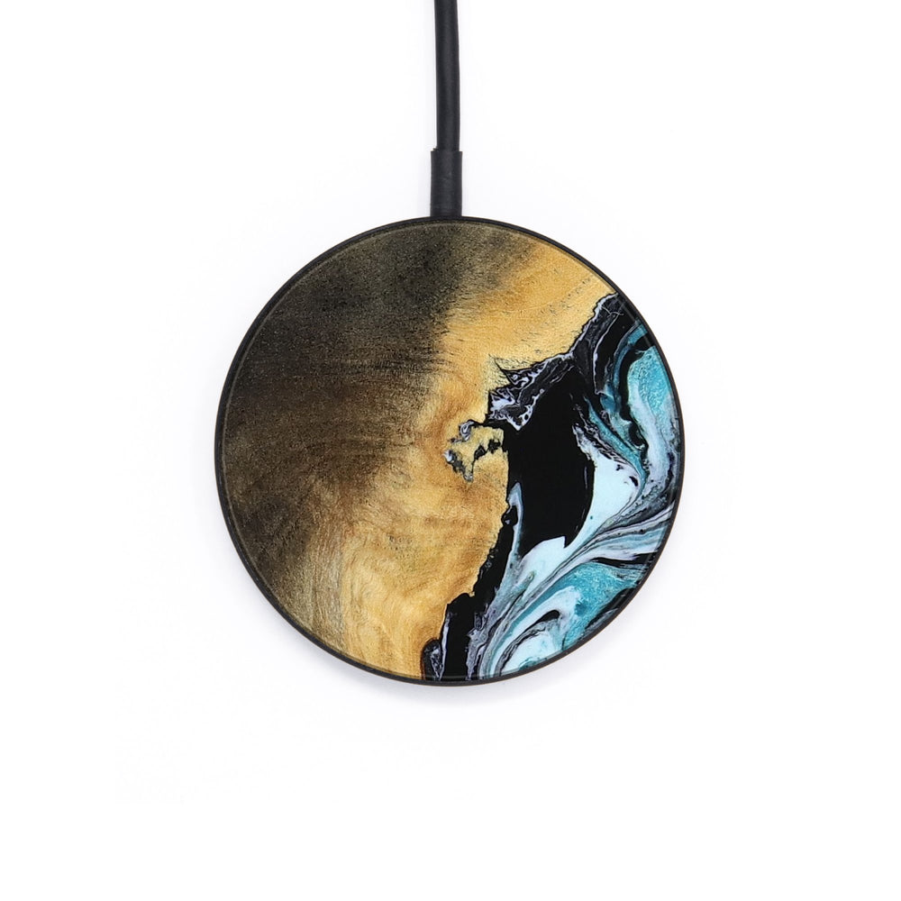 Perfectly simple, MagSafe compatible, USB-C, 1 of a kind Wireless Qi charger. CNC machined aluminum body. Every Wood+Resin inlay is unique and made at our shop in Elkhart, Indiana.