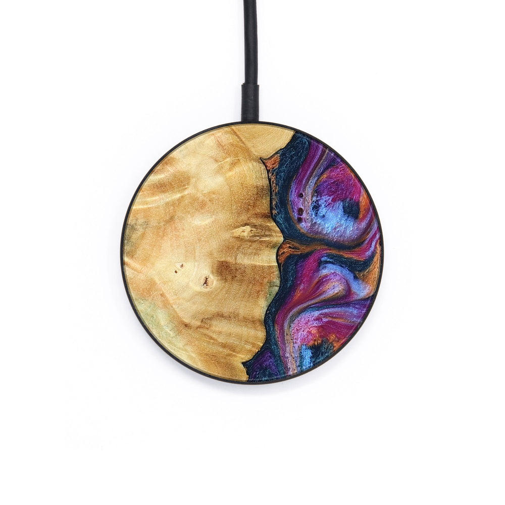 Perfectly simple, MagSafe compatible, USB-C, 1 of a kind Wireless Qi charger. CNC machined aluminum body. Every Wood+Resin inlay is unique and made at our shop in Elkhart, Indiana.