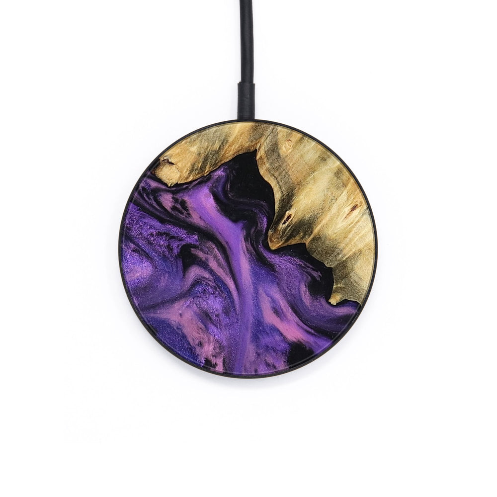Perfectly simple, MagSafe compatible, USB-C, 1 of a kind Wireless Qi charger. CNC machined aluminum body. Every Wood+Resin inlay is unique and made at our shop in Elkhart, Indiana.