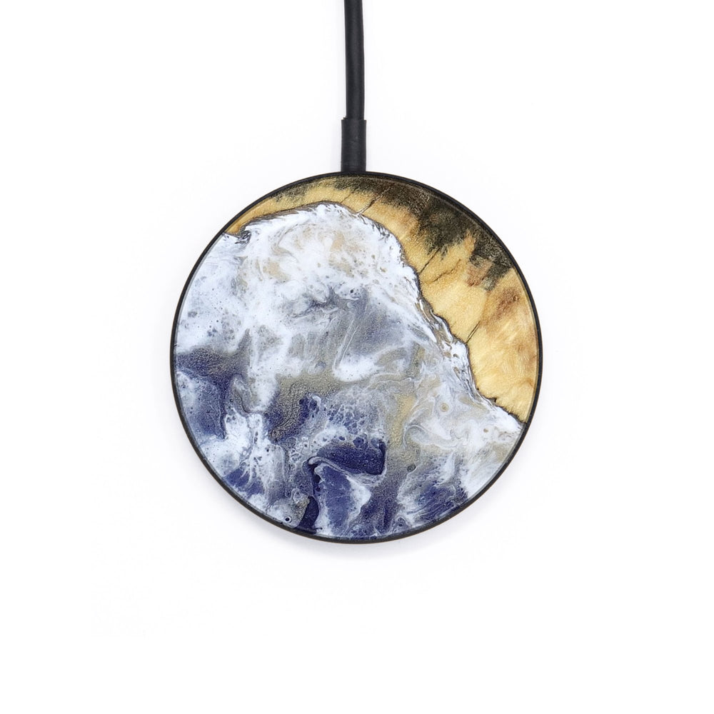 Perfectly simple, MagSafe compatible, USB-C, 1 of a kind Wireless Qi charger. CNC machined aluminum body. Every Wood+Resin inlay is unique and made at our shop in Elkhart, Indiana.