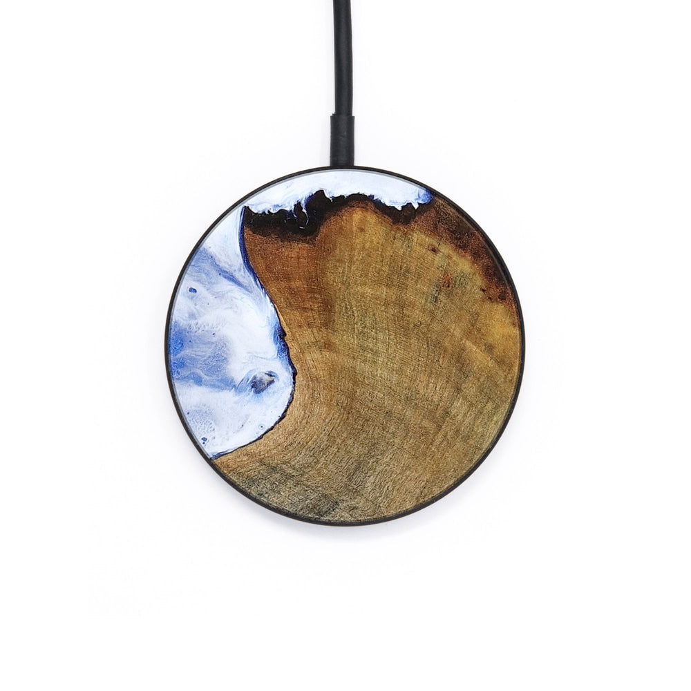 Perfectly simple, MagSafe compatible, USB-C, 1 of a kind Wireless Qi charger. CNC machined aluminum body. Every Wood+Resin inlay is unique and made at our shop in Elkhart, Indiana.