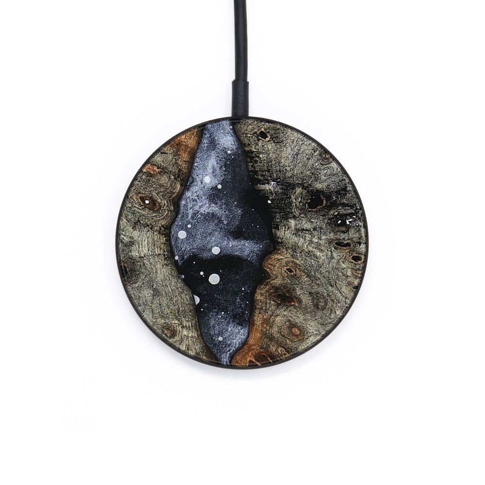 Perfectly simple, MagSafe compatible, USB-C, 1 of a kind Wireless Qi charger. CNC machined aluminum body. Every Wood+Resin inlay is unique and made at our shop in Elkhart, Indiana.
