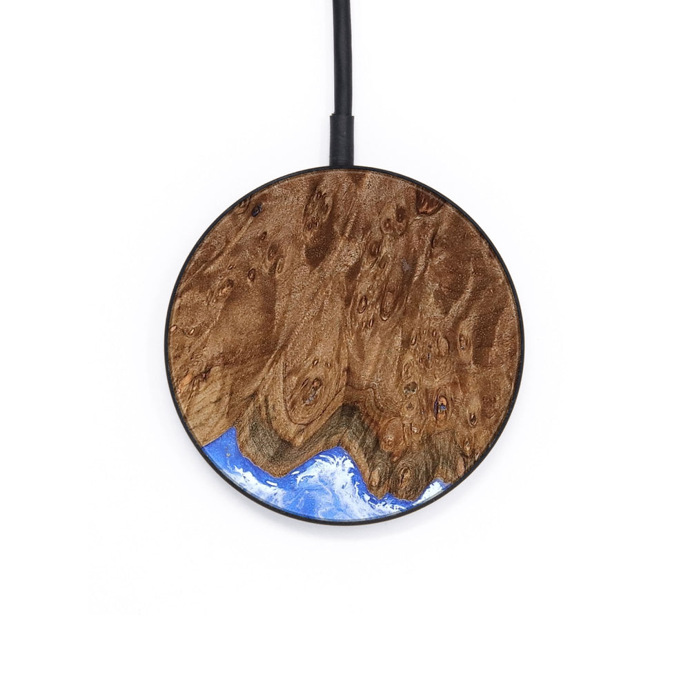 Perfectly simple, MagSafe compatible, USB-C, 1 of a kind Wireless Qi charger. CNC machined aluminum body. Every Wood+Resin inlay is unique and made at our shop in Elkhart, Indiana.