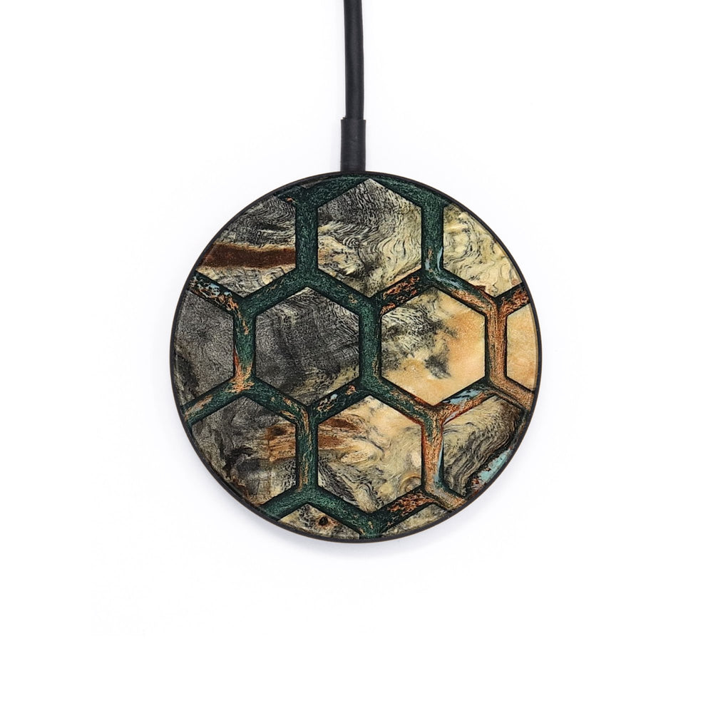 Perfectly simple, MagSafe compatible, USB-C, 1 of a kind Wireless Qi charger. CNC machined aluminum body. Every Wood+Resin inlay is unique and made at our shop in Elkhart, Indiana.