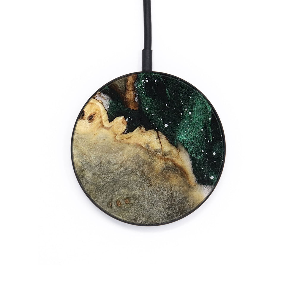 Perfectly simple, MagSafe compatible, USB-C, 1 of a kind Wireless Qi charger. CNC machined aluminum body. Every Wood+Resin inlay is unique and made at our shop in Elkhart, Indiana.