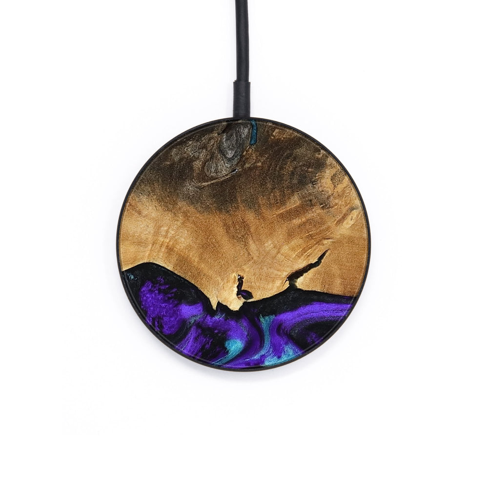 Perfectly simple, MagSafe compatible, USB-C, 1 of a kind Wireless Qi charger. CNC machined aluminum body. Every Wood+Resin inlay is unique and made at our shop in Elkhart, Indiana.