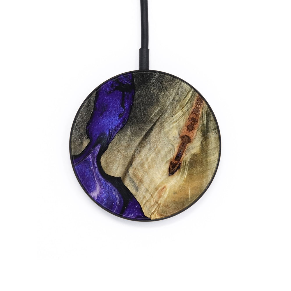 Perfectly simple, MagSafe compatible, USB-C, 1 of a kind Wireless Qi charger. CNC machined aluminum body. Every Wood+Resin inlay is unique and made at our shop in Elkhart, Indiana.