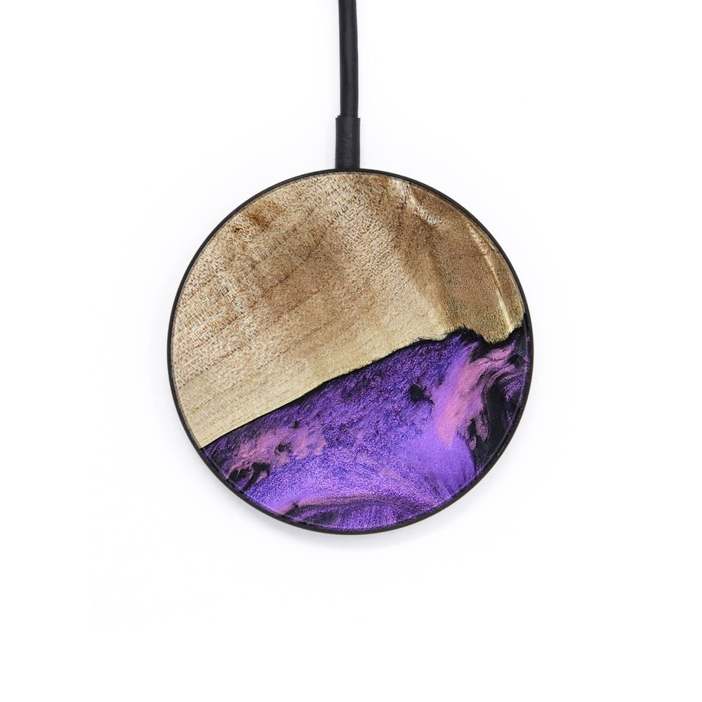 Perfectly simple, MagSafe compatible, USB-C, 1 of a kind Wireless Qi charger. CNC machined aluminum body. Every Wood+Resin inlay is unique and made at our shop in Elkhart, Indiana.