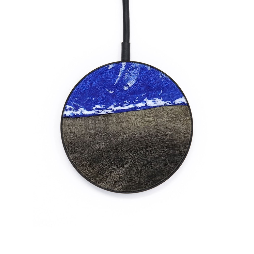 Perfectly simple, MagSafe compatible, USB-C, 1 of a kind Wireless Qi charger. CNC machined aluminum body. Every Wood+Resin inlay is unique and made at our shop in Elkhart, Indiana.