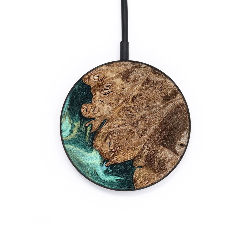 Perfectly simple, MagSafe compatible, USB-C, 1 of a kind Wireless Qi charger. CNC machined aluminum body. Every Wood+Resin inlay is unique and made at our shop in Elkhart, Indiana.