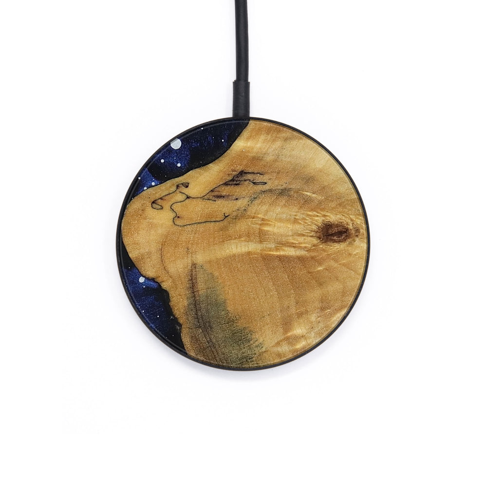 Perfectly simple, MagSafe compatible, USB-C, 1 of a kind Wireless Qi charger. CNC machined aluminum body. Every Wood+Resin inlay is unique and made at our shop in Elkhart, Indiana.