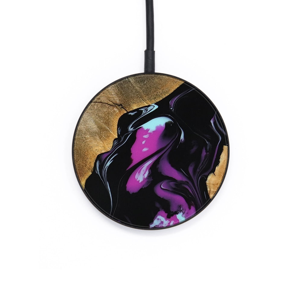 Perfectly simple, MagSafe compatible, USB-C, 1 of a kind Wireless Qi charger. CNC machined aluminum body. Every Wood+Resin inlay is unique and made at our shop in Elkhart, Indiana.