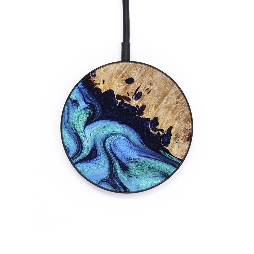 Perfectly simple, MagSafe compatible, USB-C, 1 of a kind Wireless Qi charger. CNC machined aluminum body. Every Wood+Resin inlay is unique and made at our shop in Elkhart, Indiana.