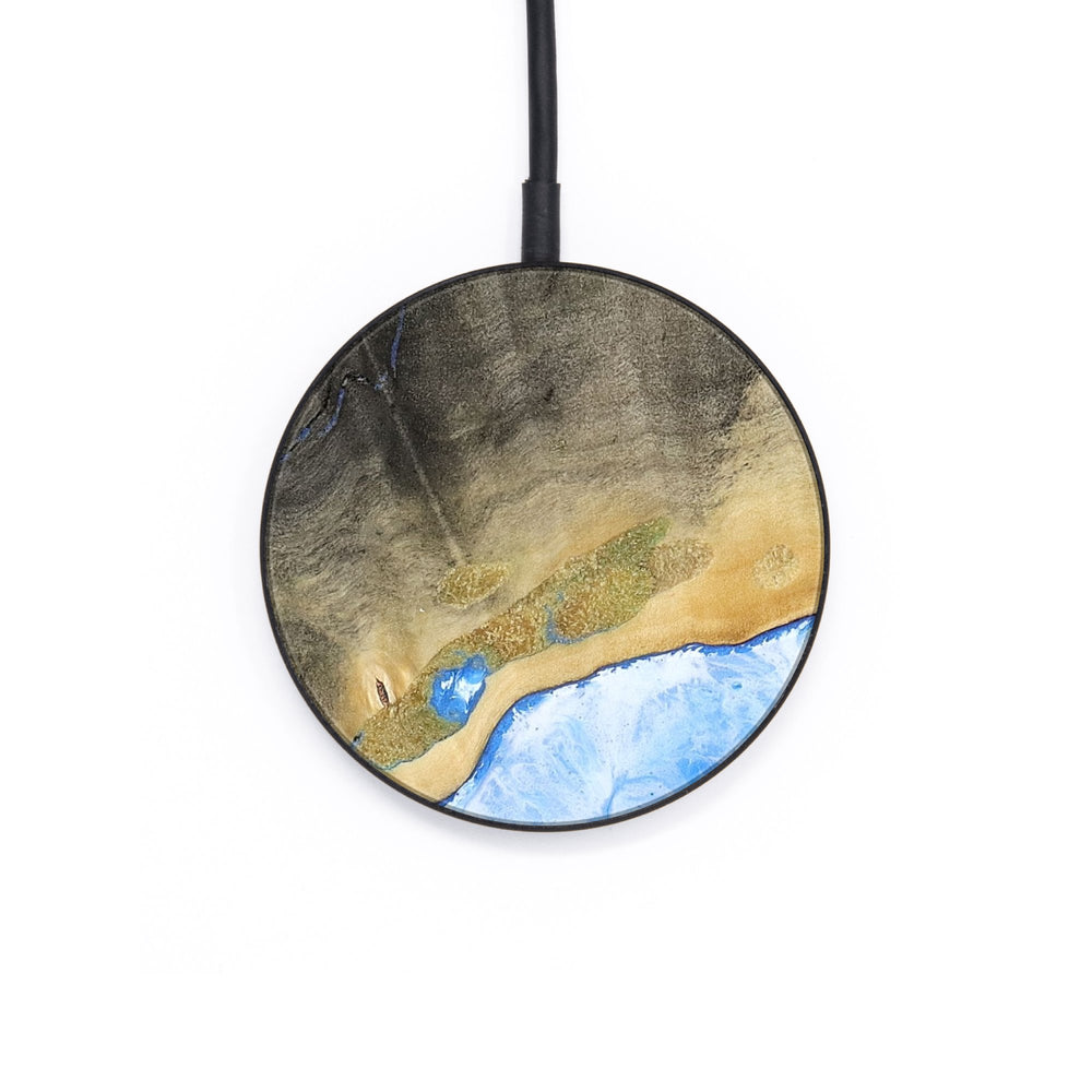 Perfectly simple, MagSafe compatible, USB-C, 1 of a kind Wireless Qi charger. CNC machined aluminum body. Every Wood+Resin inlay is unique and made at our shop in Elkhart, Indiana.