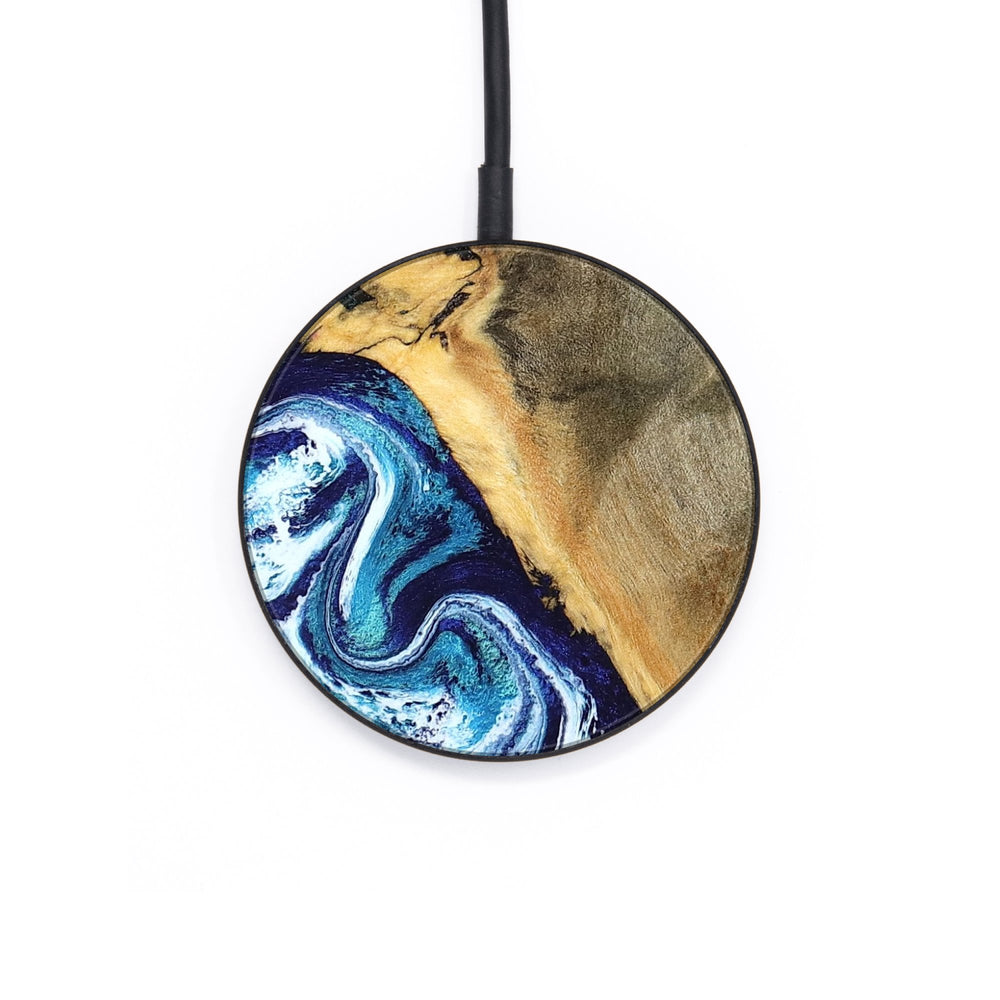 Perfectly simple, MagSafe compatible, USB-C, 1 of a kind Wireless Qi charger. CNC machined aluminum body. Every Wood+Resin inlay is unique and made at our shop in Elkhart, Indiana.