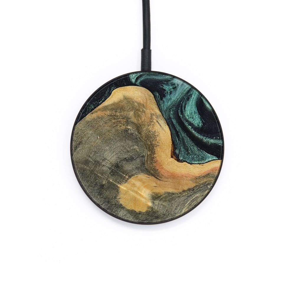 Perfectly simple, MagSafe compatible, USB-C, 1 of a kind Wireless Qi charger. CNC machined aluminum body. Every Wood+Resin inlay is unique and made at our shop in Elkhart, Indiana.