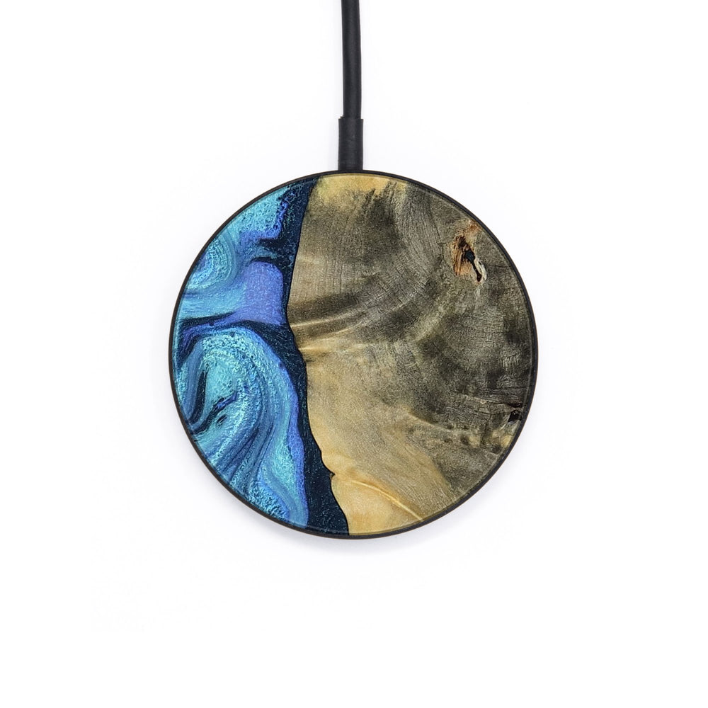Perfectly simple, MagSafe compatible, USB-C, 1 of a kind Wireless Qi charger. CNC machined aluminum body. Every Wood+Resin inlay is unique and made at our shop in Elkhart, Indiana.