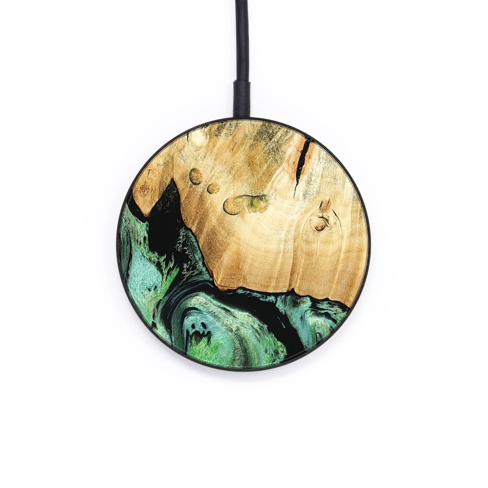 Perfectly simple, MagSafe compatible, USB-C, 1 of a kind Wireless Qi charger. CNC machined aluminum body. Every Wood+Resin inlay is unique and made at our shop in Elkhart, Indiana.