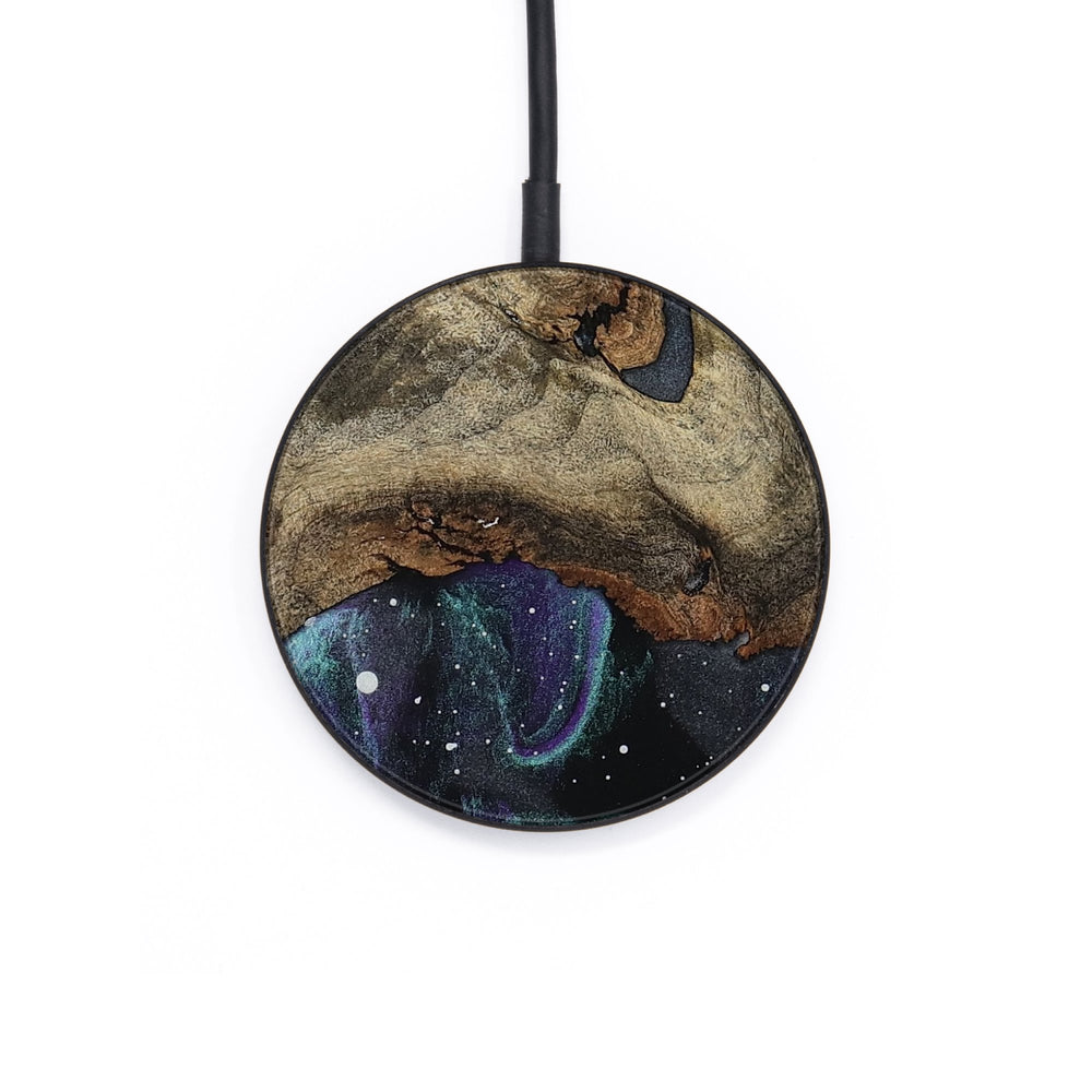Perfectly simple, MagSafe compatible, USB-C, 1 of a kind Wireless Qi charger. CNC machined aluminum body. Every Wood+Resin inlay is unique and made at our shop in Elkhart, Indiana.
