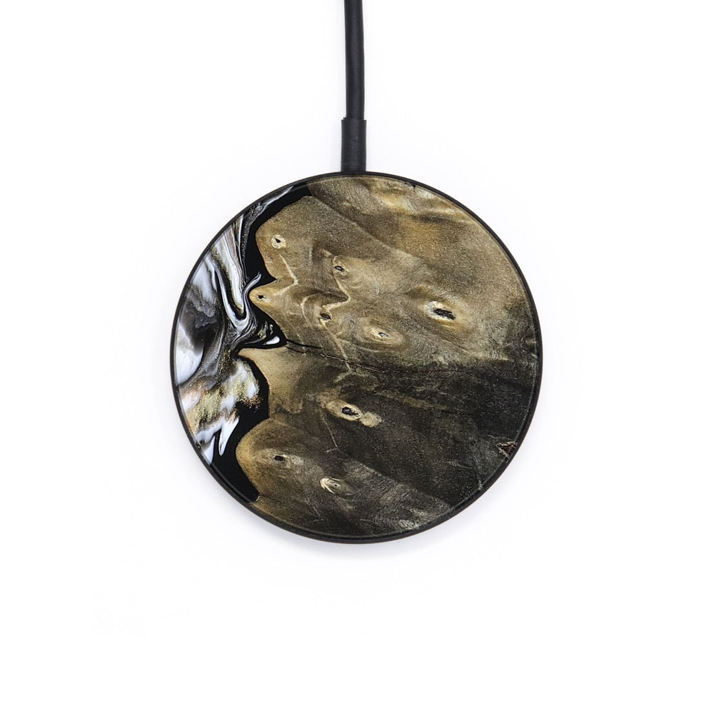 Perfectly simple, MagSafe compatible, USB-C, 1 of a kind Wireless Qi charger. CNC machined aluminum body. Every Wood+Resin inlay is unique and made at our shop in Elkhart, Indiana.