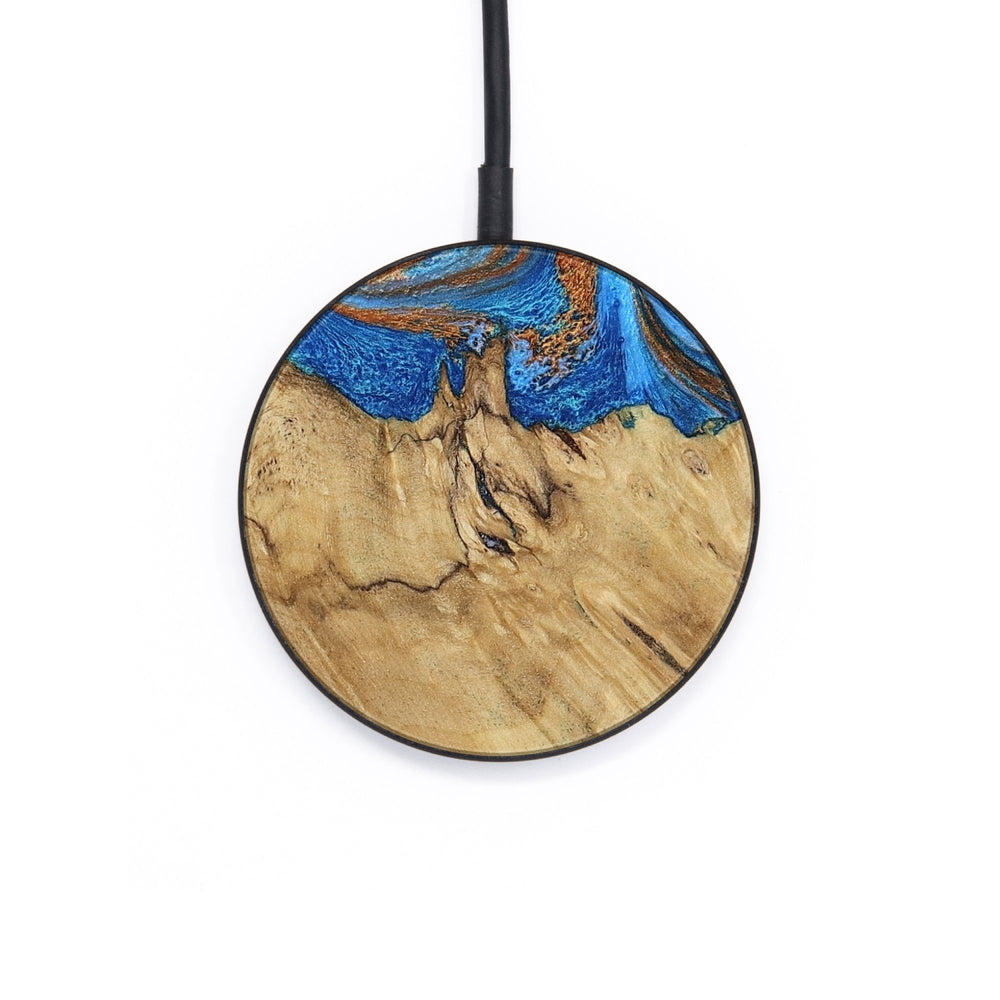 Perfectly simple, MagSafe compatible, USB-C, 1 of a kind Wireless Qi charger. CNC machined aluminum body. Every Wood+Resin inlay is unique and made at our shop in Elkhart, Indiana.