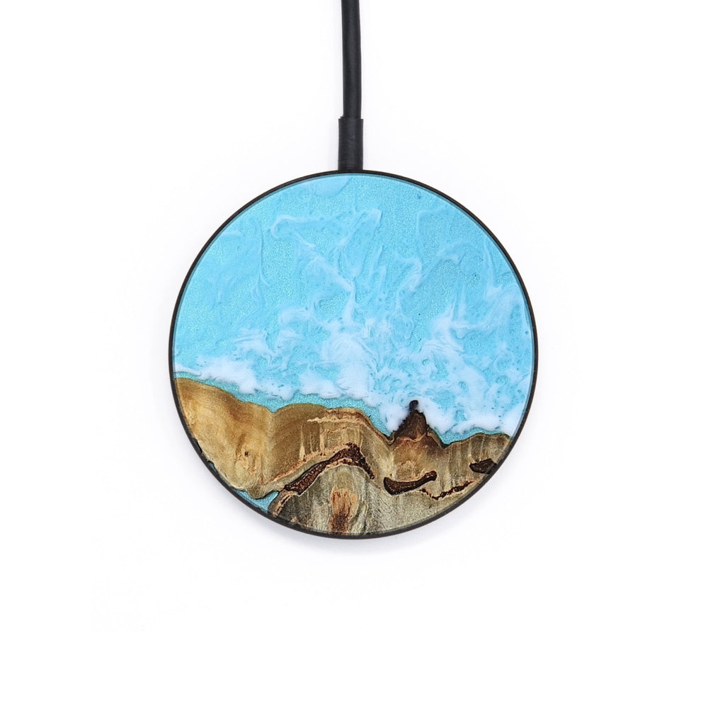 Perfectly simple, MagSafe compatible, USB-C, 1 of a kind Wireless Qi charger. CNC machined aluminum body. Every Wood+Resin inlay is unique and made at our shop in Elkhart, Indiana.
