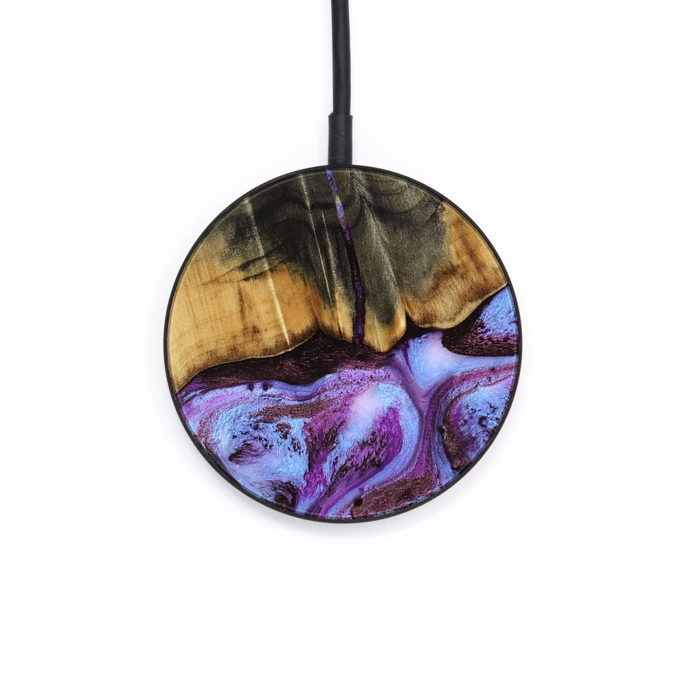 Perfectly simple, MagSafe compatible, USB-C, 1 of a kind Wireless Qi charger. CNC machined aluminum body. Every Wood+Resin inlay is unique and made at our shop in Elkhart, Indiana.