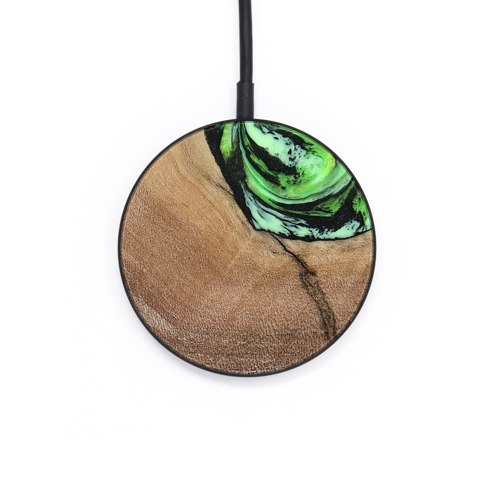 Perfectly simple, MagSafe compatible, USB-C, 1 of a kind Wireless Qi charger. CNC machined aluminum body. Every Wood+Resin inlay is unique and made at our shop in Elkhart, Indiana.