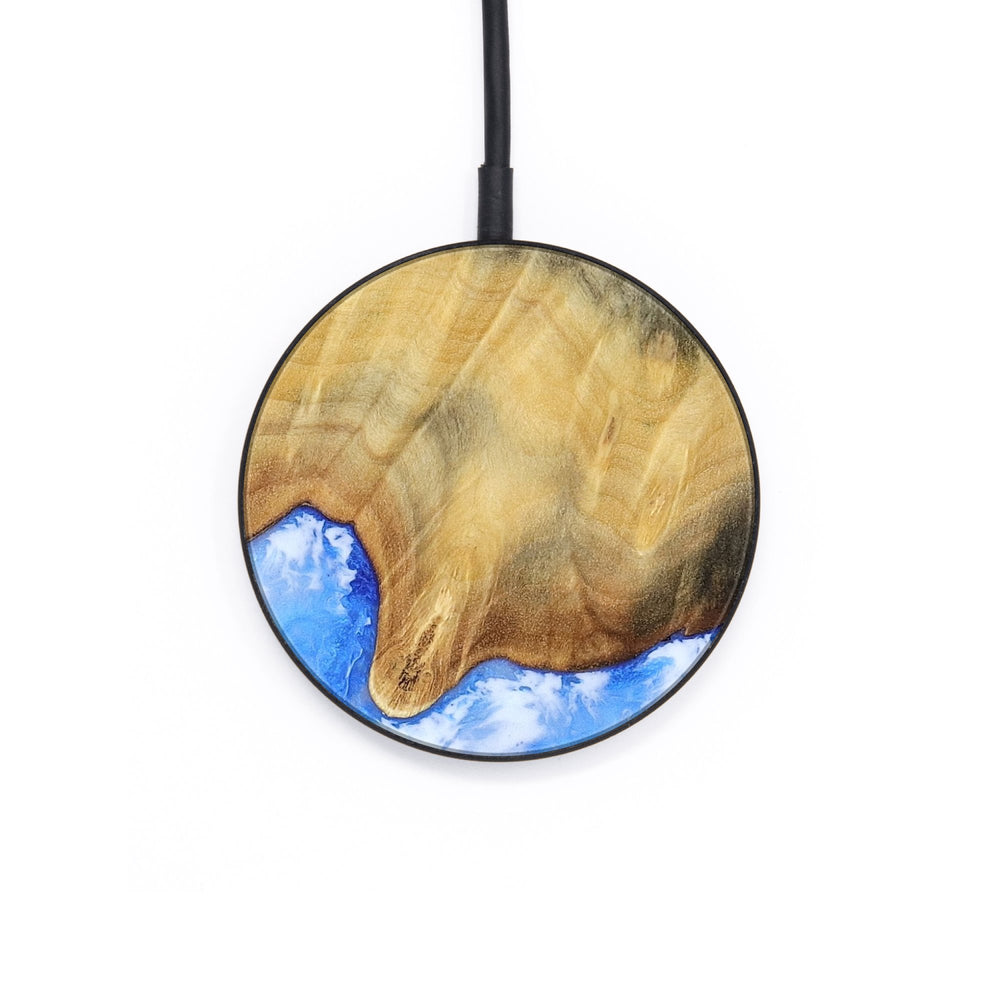 Perfectly simple, MagSafe compatible, USB-C, 1 of a kind Wireless Qi charger. CNC machined aluminum body. Every Wood+Resin inlay is unique and made at our shop in Elkhart, Indiana.