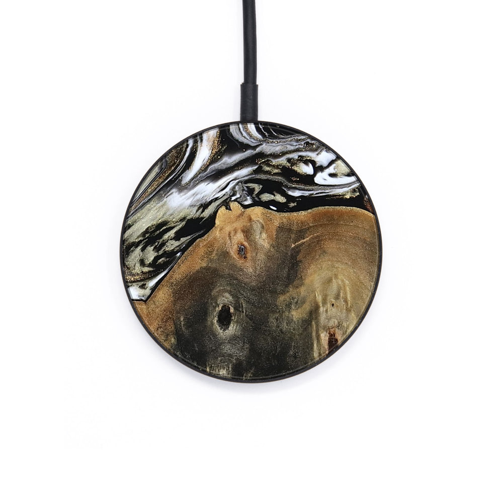 Perfectly simple, MagSafe compatible, USB-C, 1 of a kind Wireless Qi charger. CNC machined aluminum body. Every Wood+Resin inlay is unique and made at our shop in Elkhart, Indiana.