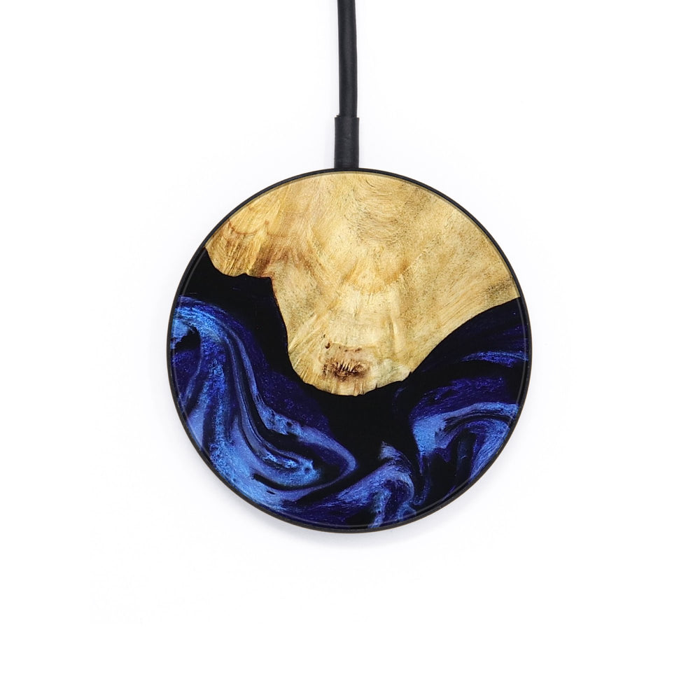 Perfectly simple, MagSafe compatible, USB-C, 1 of a kind Wireless Qi charger. CNC machined aluminum body. Every Wood+Resin inlay is unique and made at our shop in Elkhart, Indiana.