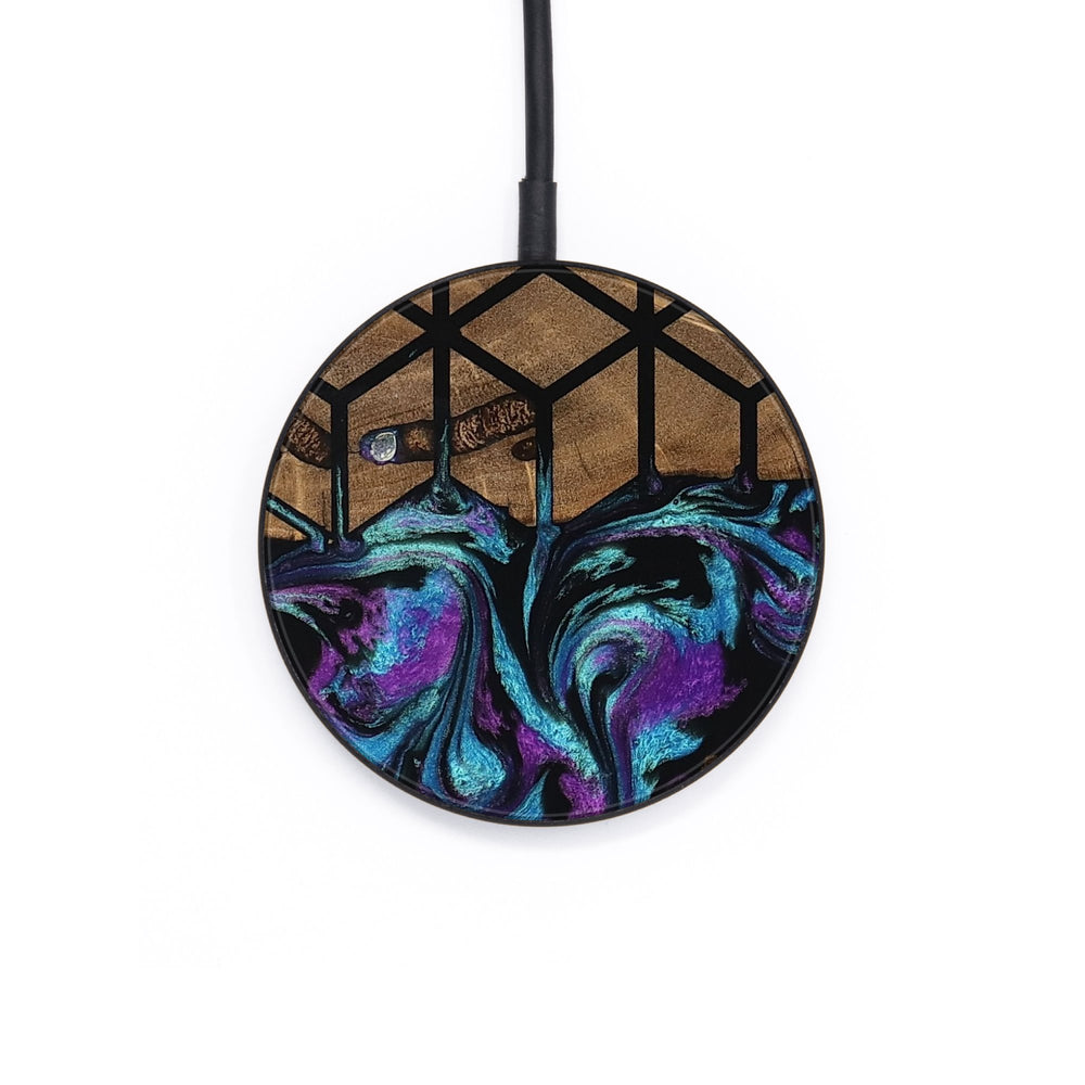 Perfectly simple, MagSafe compatible, USB-C, 1 of a kind Wireless Qi charger. CNC machined aluminum body. Every Wood+Resin inlay is unique and made at our shop in Elkhart, Indiana.