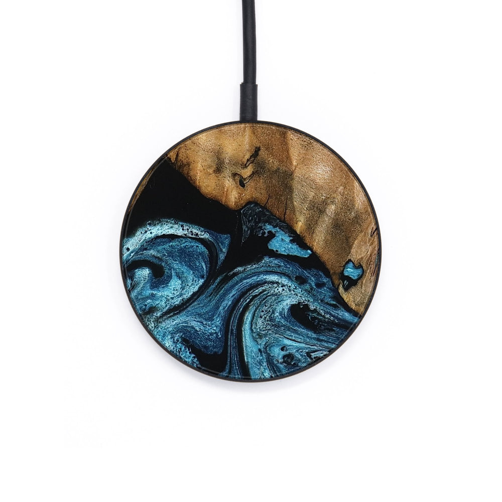 Perfectly simple, MagSafe compatible, USB-C, 1 of a kind Wireless Qi charger. CNC machined aluminum body. Every Wood+Resin inlay is unique and made at our shop in Elkhart, Indiana.
