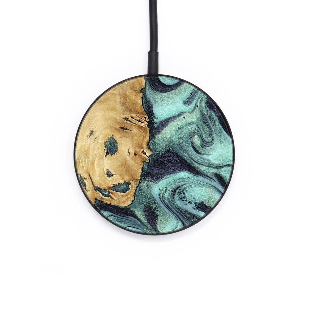Perfectly simple, MagSafe compatible, USB-C, 1 of a kind Wireless Qi charger. CNC machined aluminum body. Every Wood+Resin inlay is unique and made at our shop in Elkhart, Indiana.