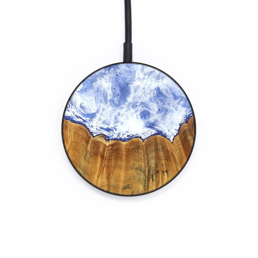 Perfectly simple, MagSafe compatible, USB-C, 1 of a kind Wireless Qi charger. CNC machined aluminum body. Every Wood+Resin inlay is unique and made at our shop in Elkhart, Indiana.