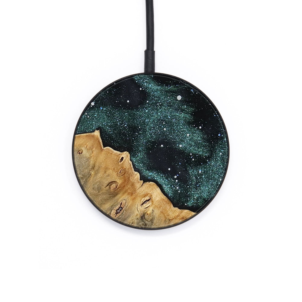 Perfectly simple, MagSafe compatible, USB-C, 1 of a kind Wireless Qi charger. CNC machined aluminum body. Every Wood+Resin inlay is unique and made at our shop in Elkhart, Indiana.