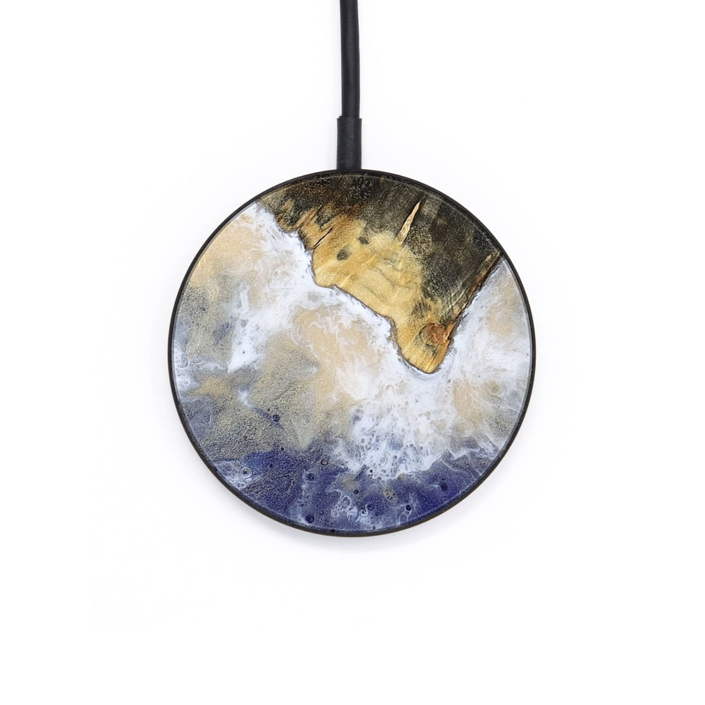 Perfectly simple, MagSafe compatible, USB-C, 1 of a kind Wireless Qi charger. CNC machined aluminum body. Every Wood+Resin inlay is unique and made at our shop in Elkhart, Indiana.